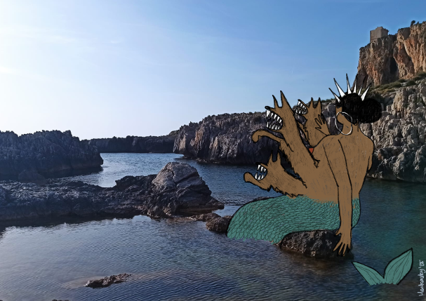 Postcards from Sicily is a body of work started in 2021 that reimagines the figures of the monster and the animal—traditionally used to demonize women, queers, and Southerners—as guardians of an ancient, unruly power. Drawing from Mediterranean landscapes, the project explores the South as a space of queer, decolonial resistance, where hybrid and wild bodies exist unapologetically, in fierce intimacy with nature. Over time, the work has evolved into tracing a local cultural genealogy rooted in Greek mythology, seeking to uncover the origins and meanings of such projections of otherness.